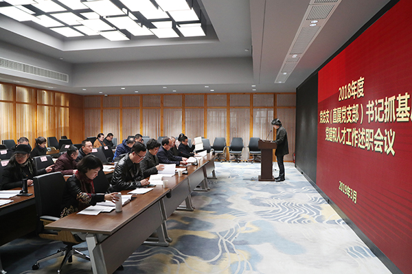 会上,中国画与书法艺术学院党总支、绘画艺术学院党总支、雕塑与公共艺术学院党总支、艺术管理与教育学院党总支、手工艺术学院党总支、创新设计学院党总支、后勤党总支等7个党总支书记及公共体育部党支部、中德学院党支部、附中党支部、资产经营有限公司党支部等4个直属党支部书记围绕2018年度抓基层党建和人才工作情况进行现场述职,其他党总支、直属党支部书记进行书面述职。
