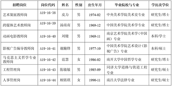专任教师岗位适用考核招聘方式,经我院招聘工作小组组织专家评议和综合测评,皮力、汤南南、谢瀚锋、刘健、范慧等5位应聘人员,考核合格。
