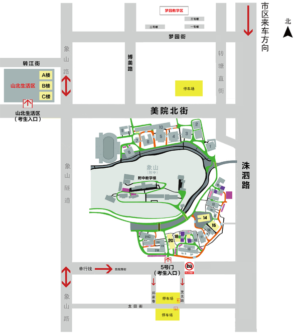 (一)中国美术学院象山校区(杭州市西湖区转塘街道象山352号),考生考试当天从美院南街5号门入校;